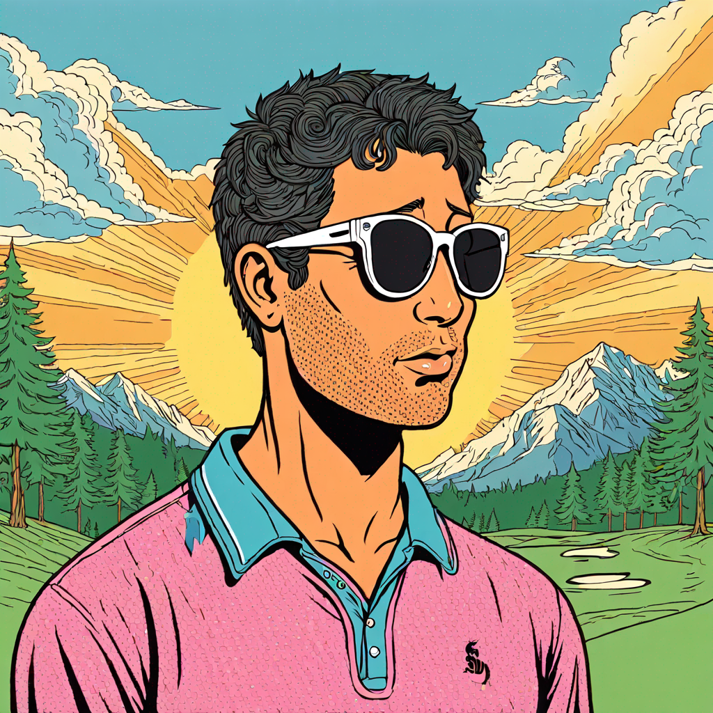 a man playing golf, sun is shining