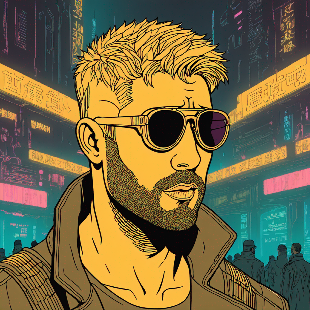 degod wearing a leather jacket, bladerunner style