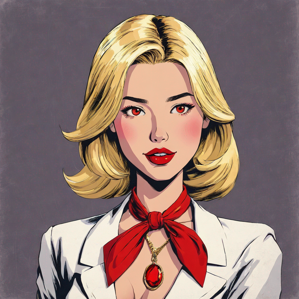 red lasereyes blonde girl red lipstick necklace