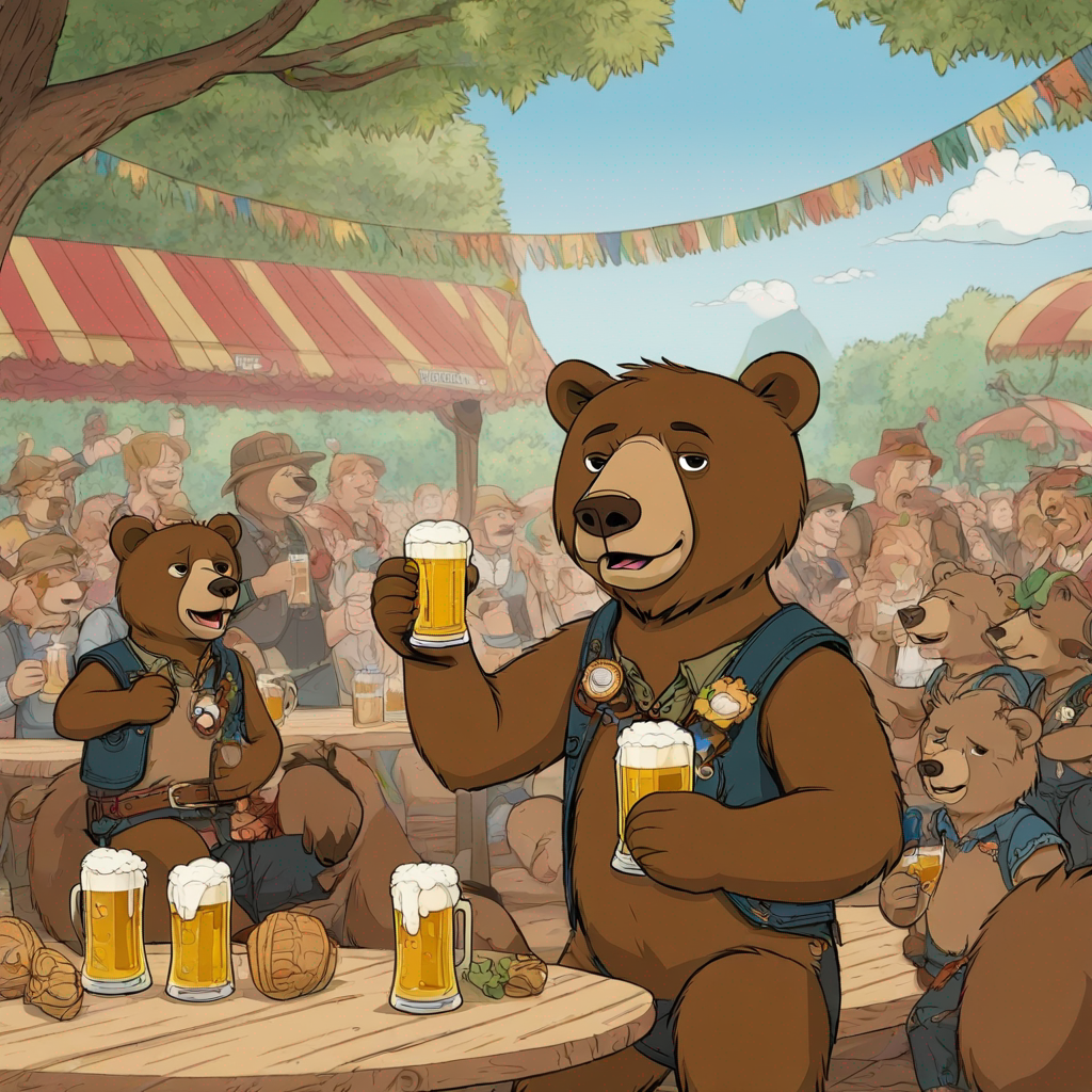 An okay bear drinking beer at the Oktoberfest with his bear friends