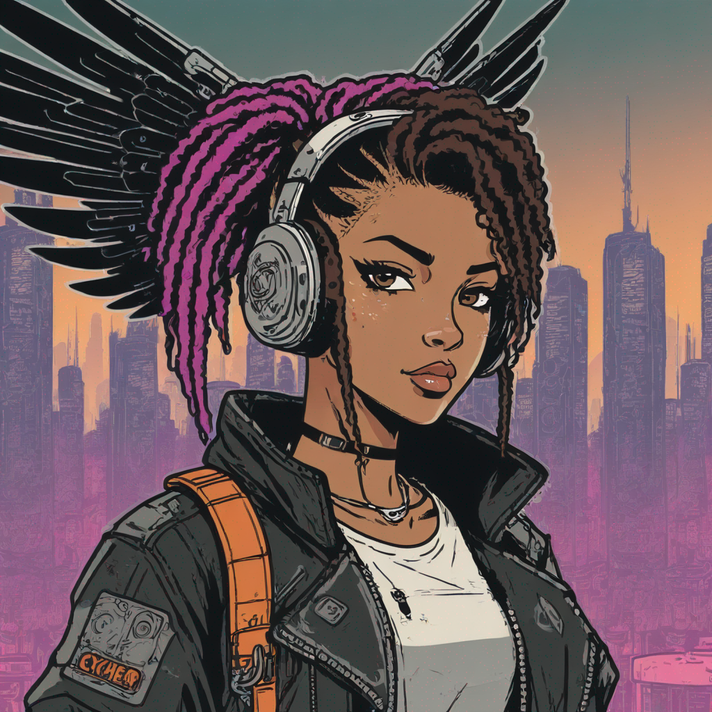 brown skinned girl with deadlocks, in cyber punk anime style, with cyb...