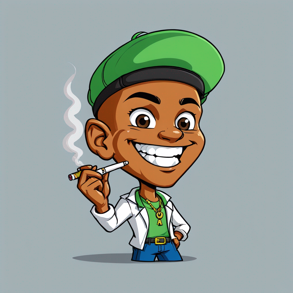 Bozo smoking a joint, smokey room, dark with lime green colors