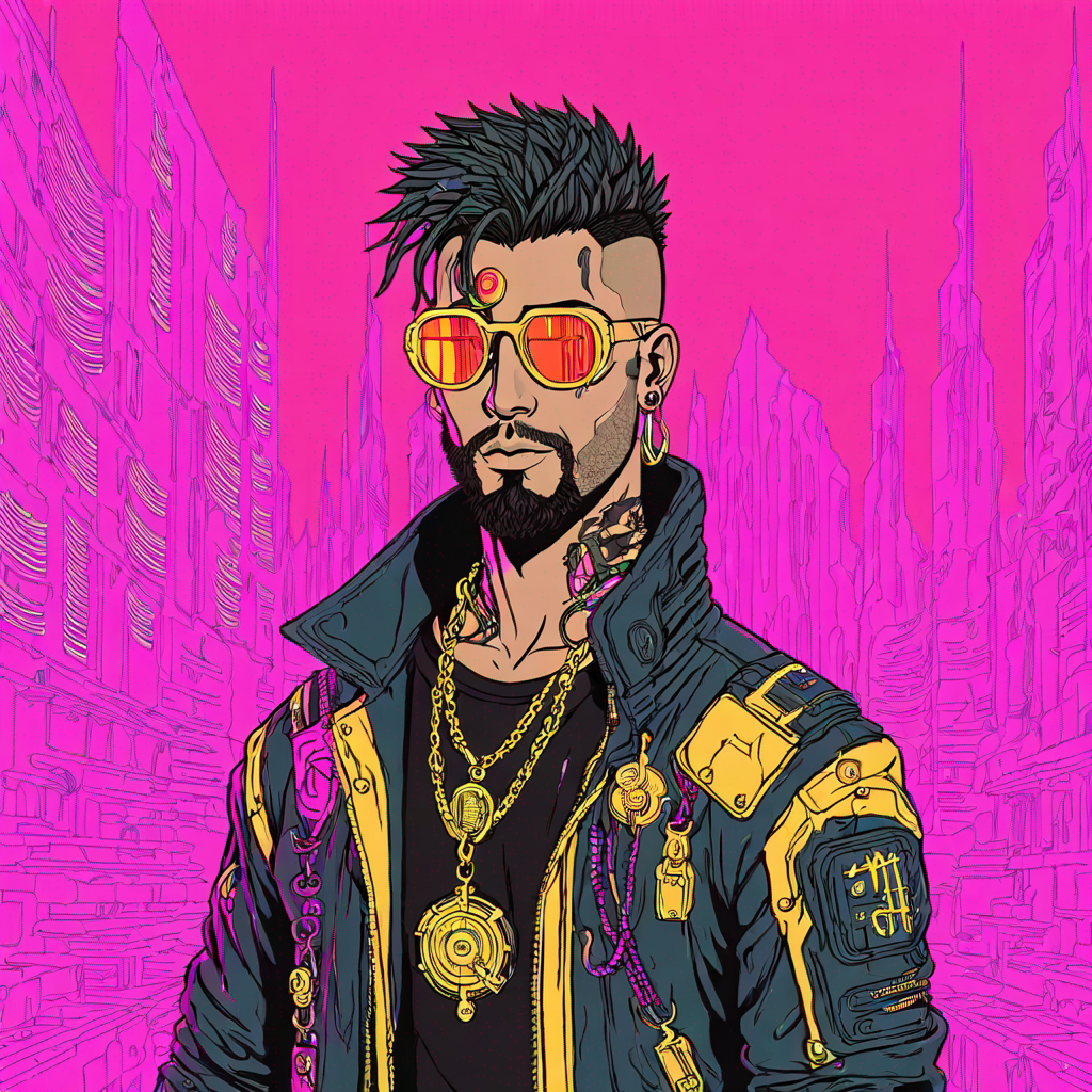 degod wearing a leather jacket, bladerunner style