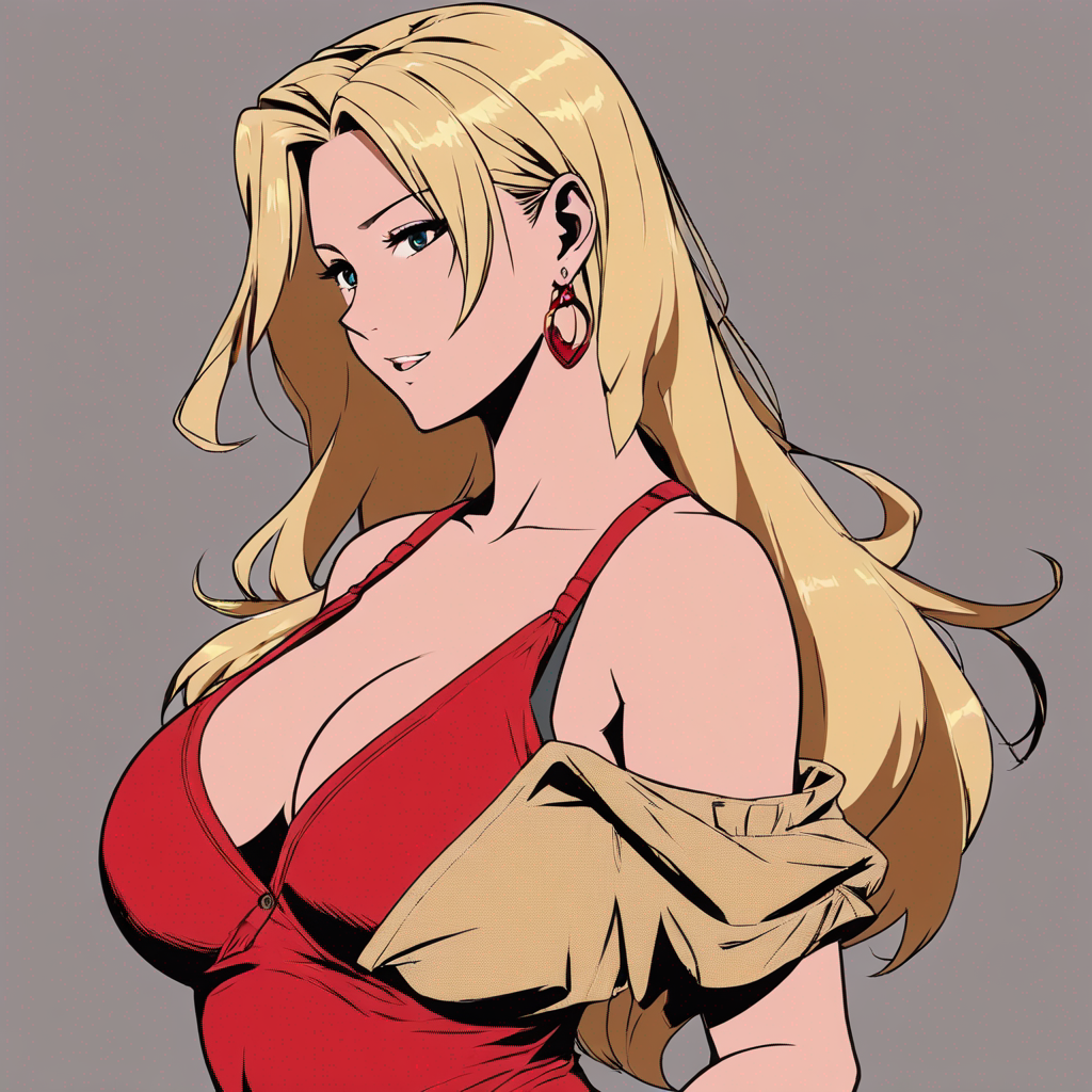 a sexy woman with blond hair and red lingerie on and massive tits with...