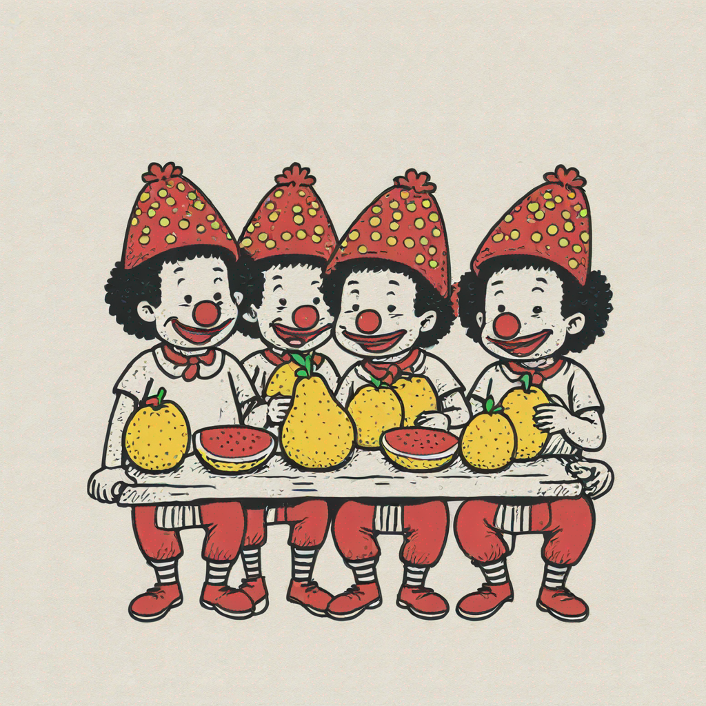 a bozo collective eating fruits