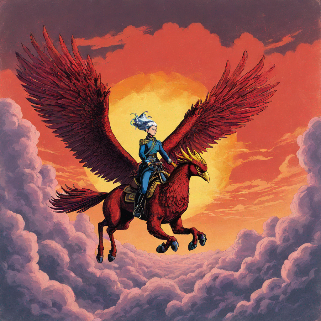 A Madlad riding on a Phoenix in the sky for war