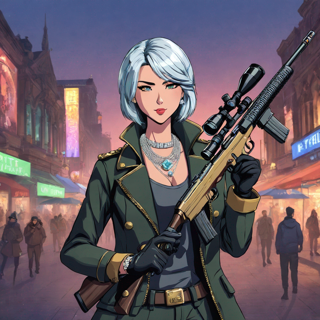 Madlads with a sniper sniping nfts in the market with a diamond necklace
