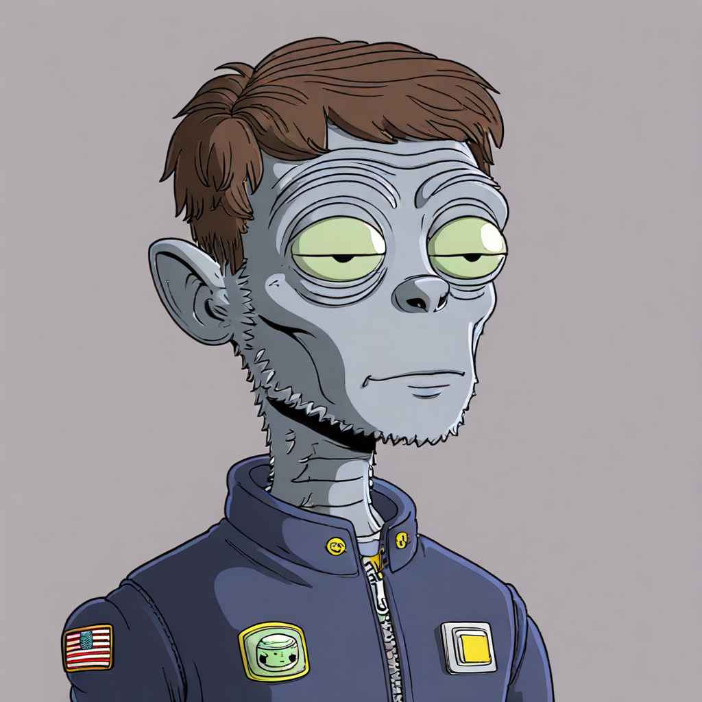 Grok robot riding a bitcoin bull with Elon musk while smoking a joint