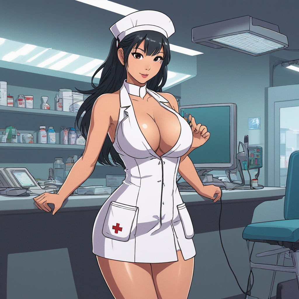 super sexy nurse showing all she got, lips, boobs, ass, half naked