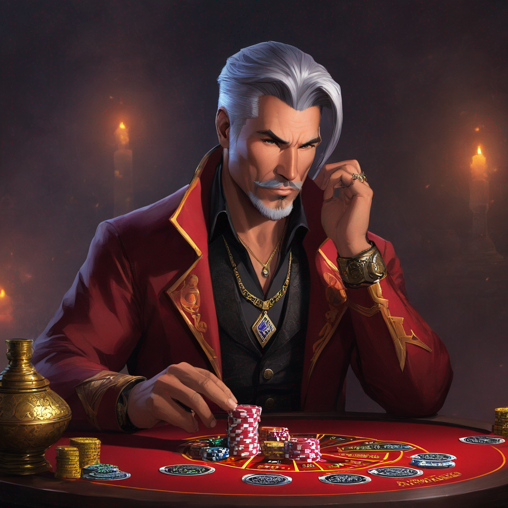 imagine a psychic gambler, a generous asian man always bringing luck, ...