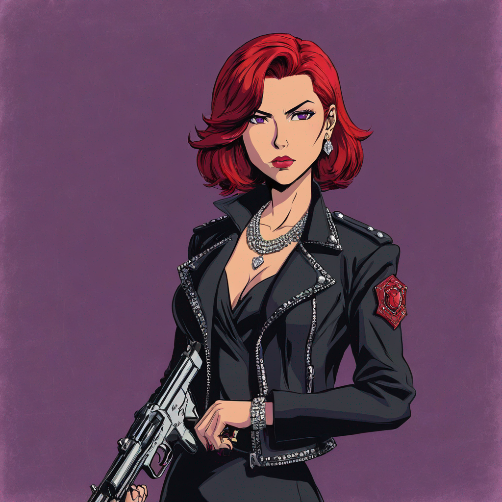 a madlad standing in silky long gown wearing diamond jewellers and holding a gun