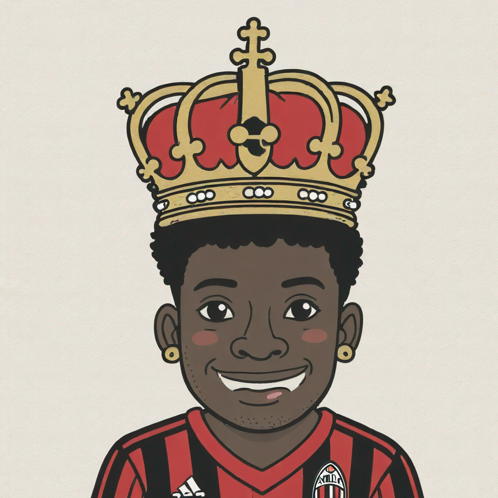rafael leao with a crown with an ac milan jersey.use just red and black