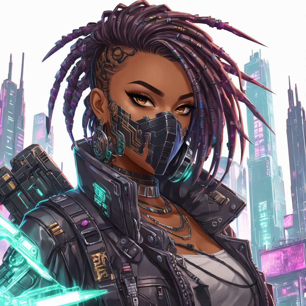brown skinned girl with deadlocks, in cyber punk anime style, with cyb...