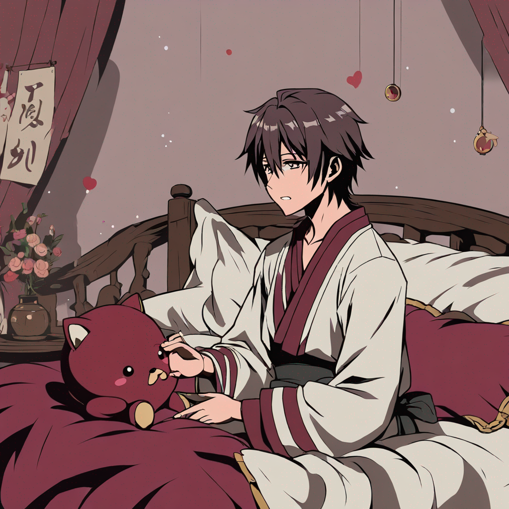 a azuki crying on his bed like baby