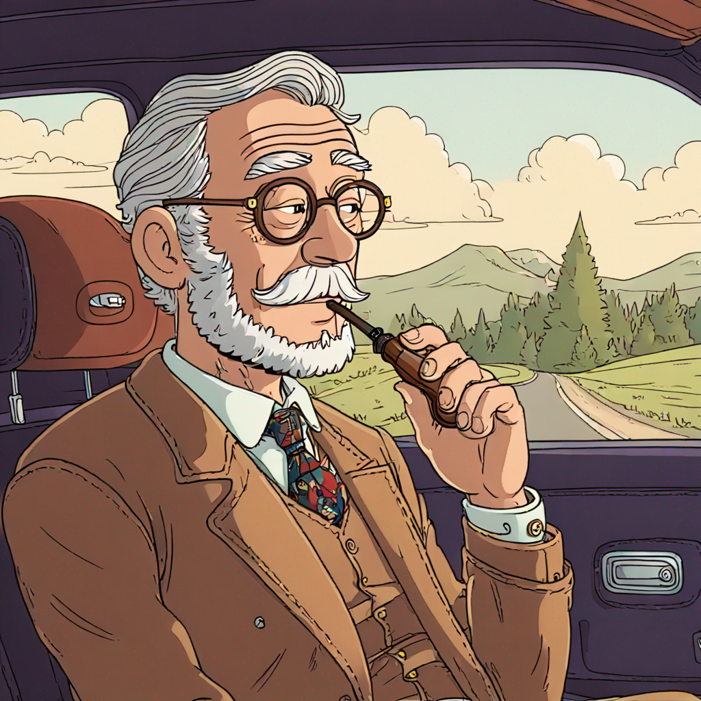 grandpa smoking a pipe in the car