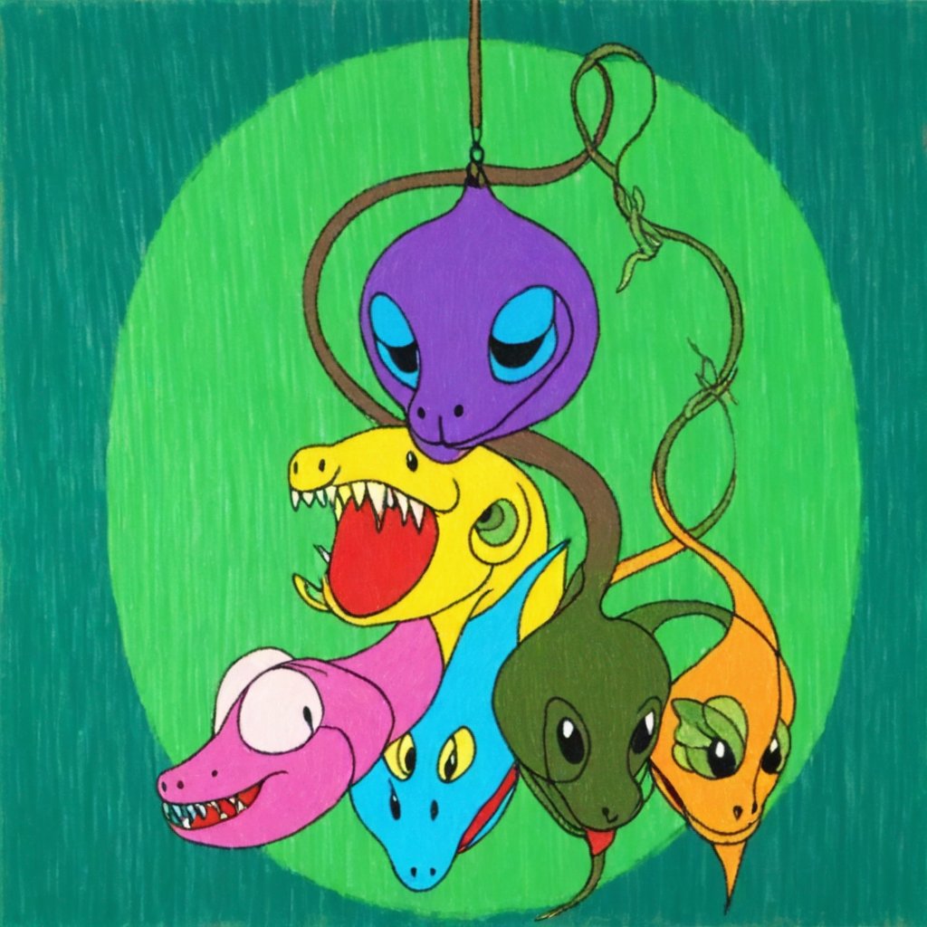 Snakes hanging from trees