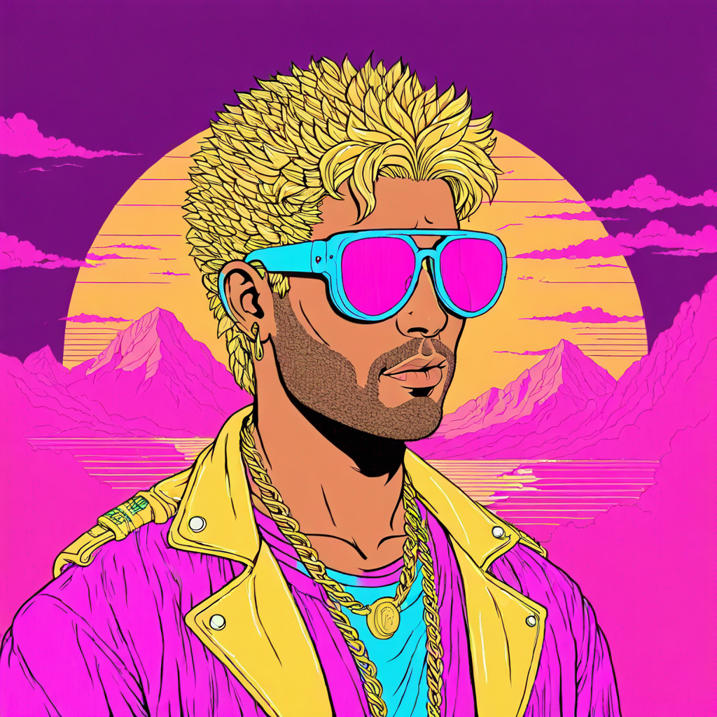 Degods in a retrowave-style 90's costume