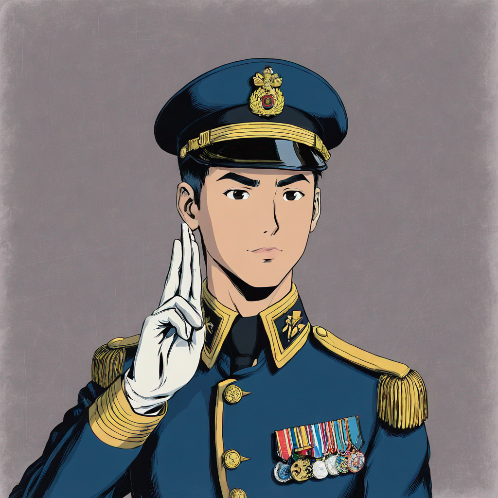 lad saluting at the camera