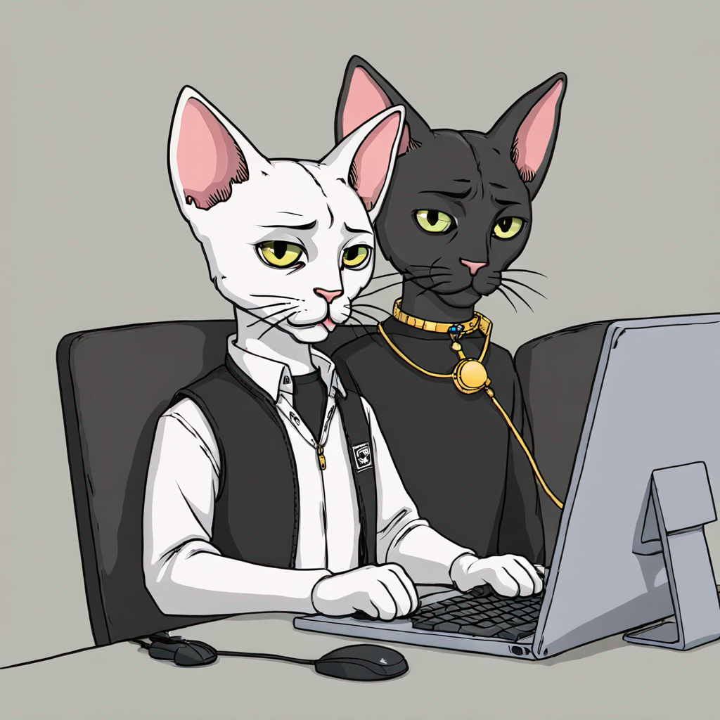 A cat trading on a computer