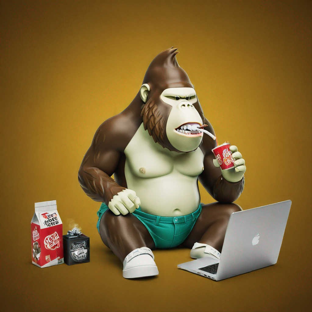 Ape smoking a Blunt, sitting at the computer