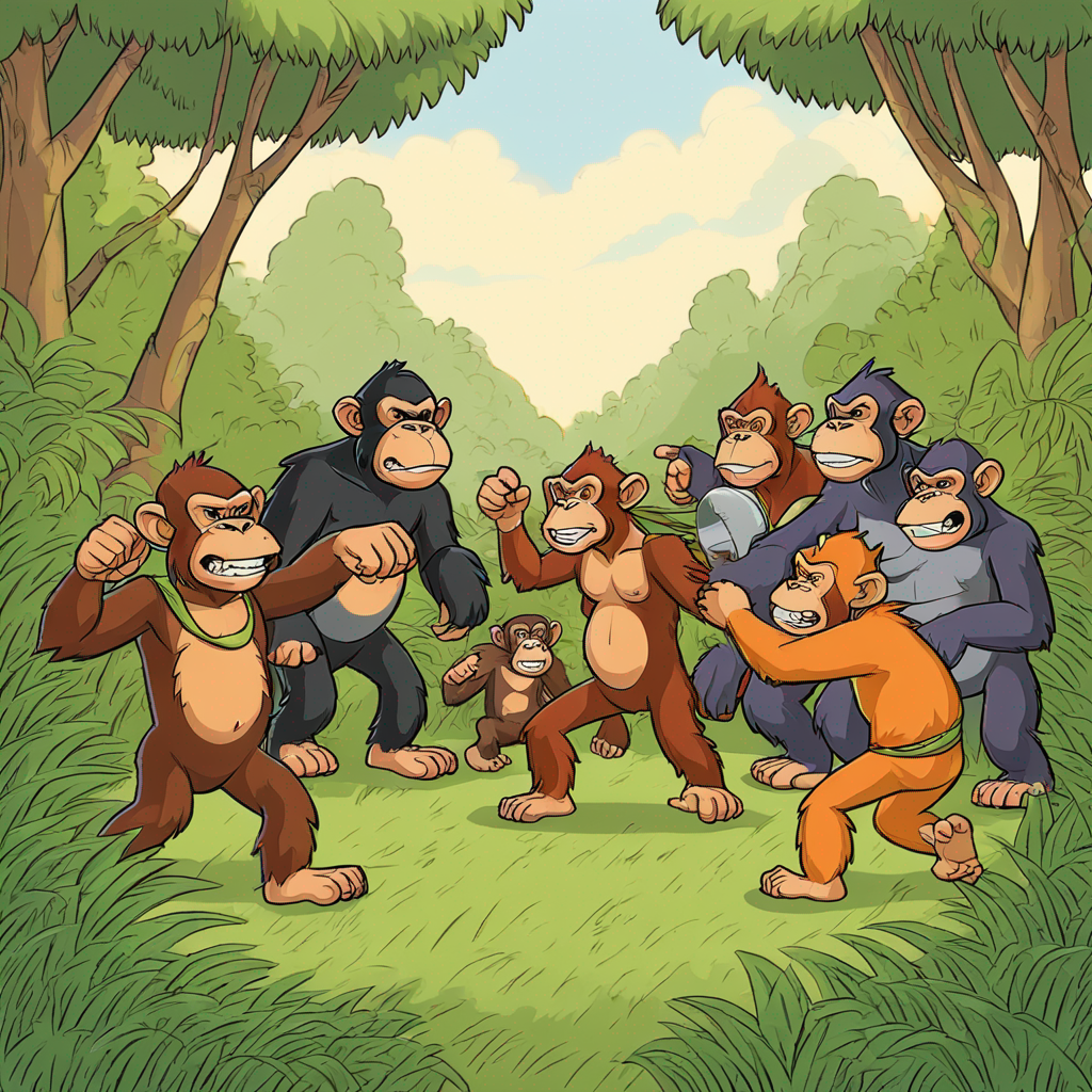 Chimps, Orangutans and Gorillas fighting over a plot of land