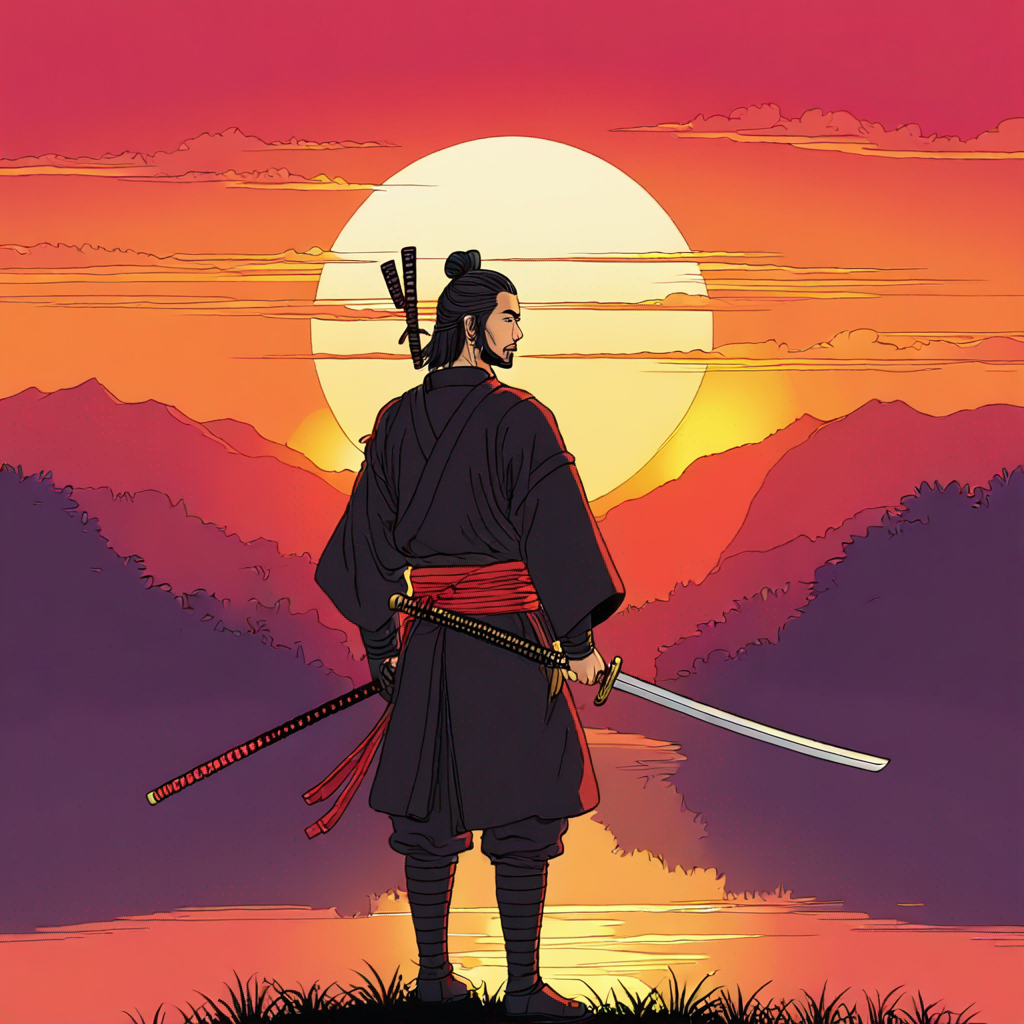 Y00ts samurai. Sunset as background