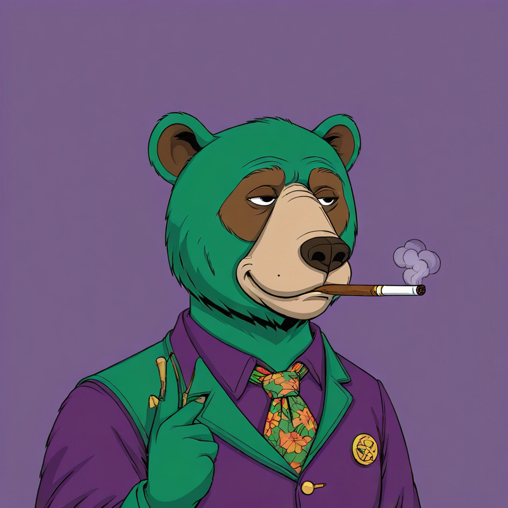 A big bear smoking a cigar in a joker costume