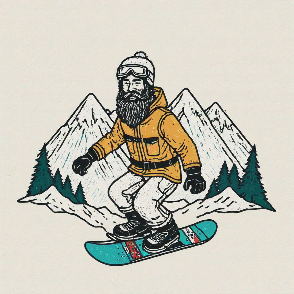 a zeus snowboarding with mountains background