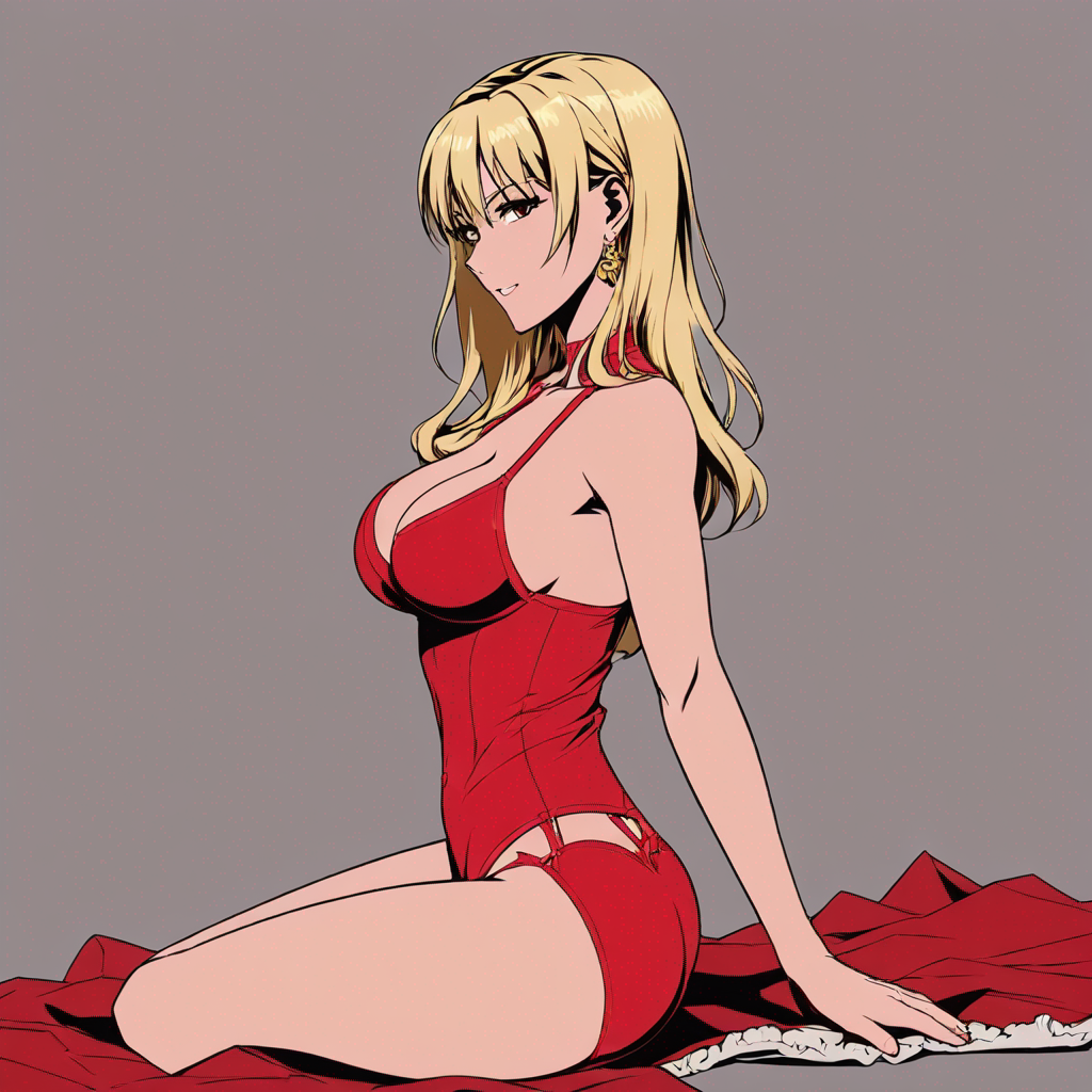 a sexy woman with blond hair and red lingerie on and massive tits and ...