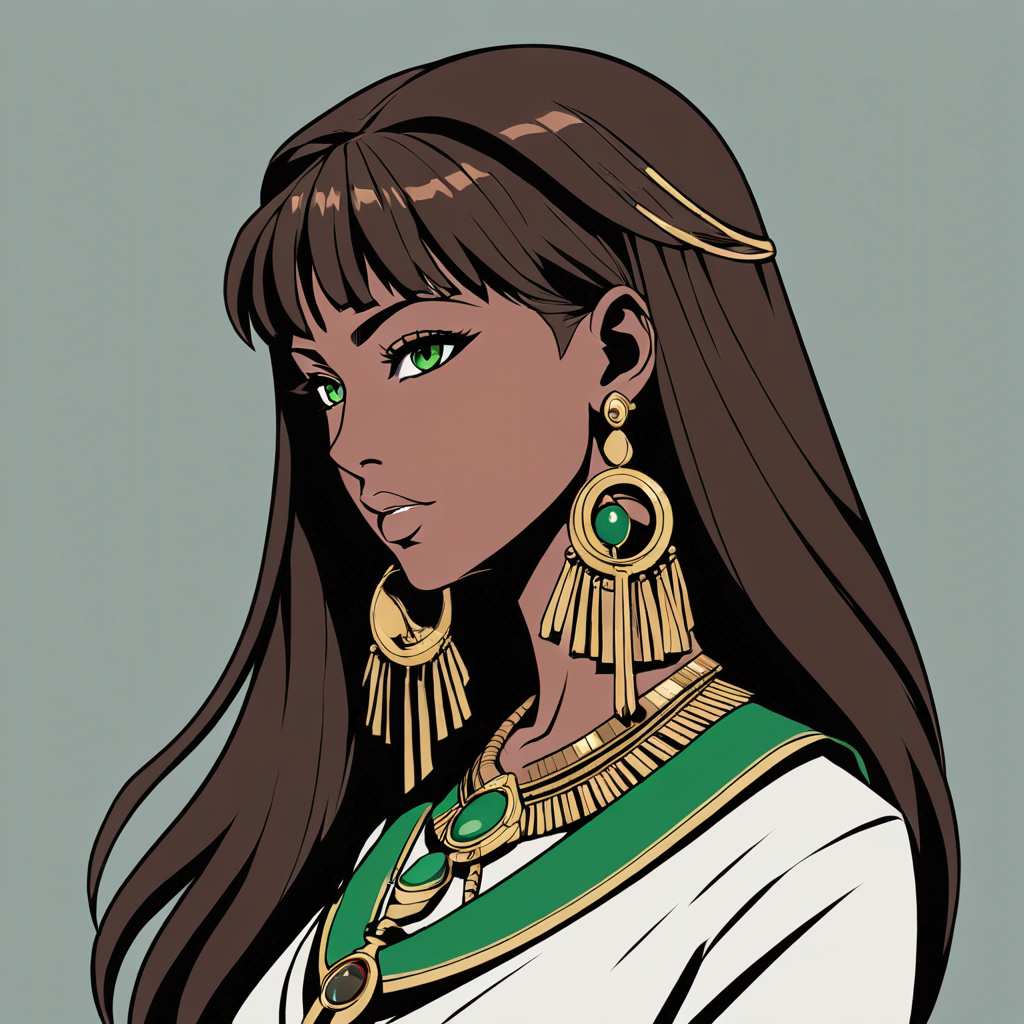 Egyptian lady brown hairs green eyes Ankh