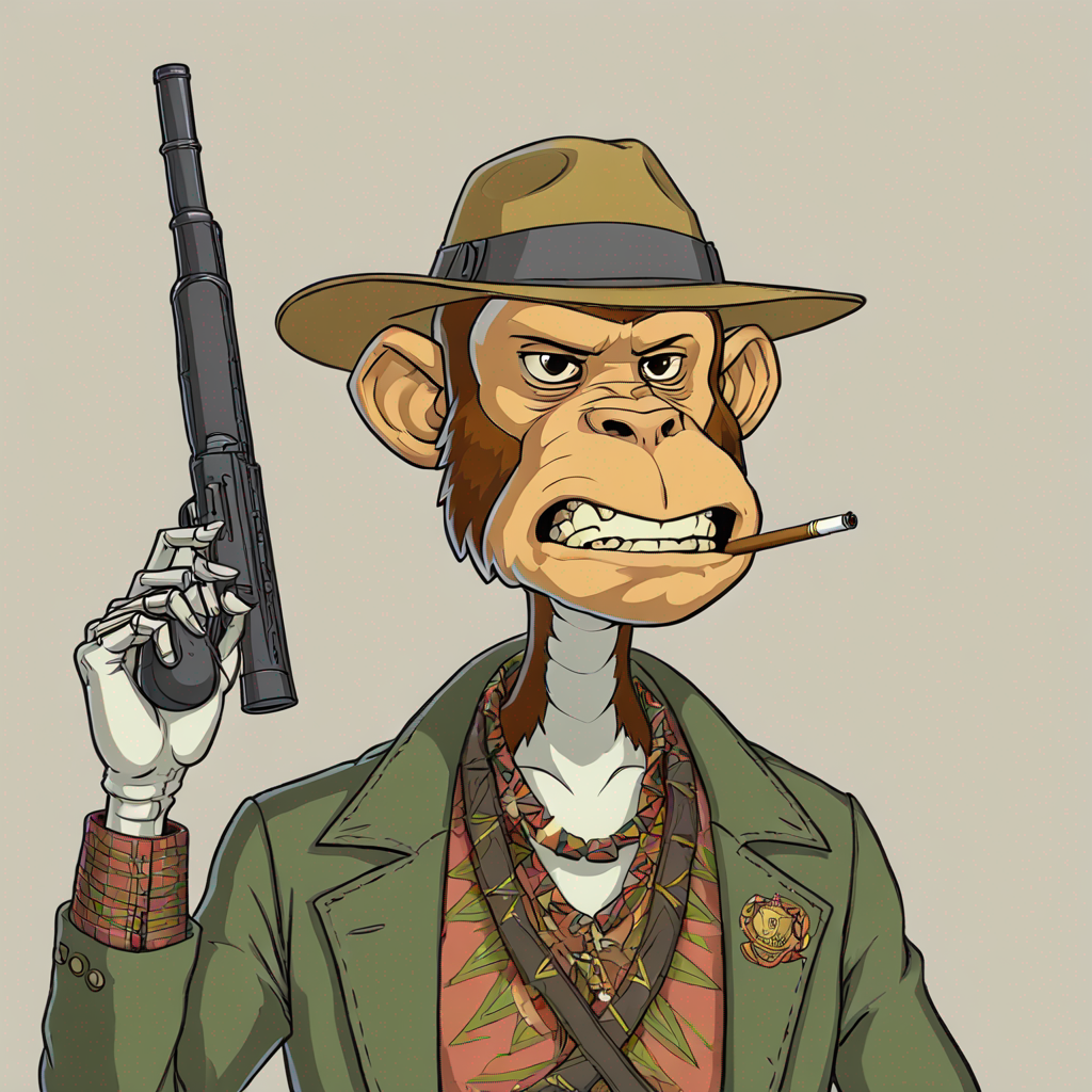skeleton monkey smoking cigar and holding rifle