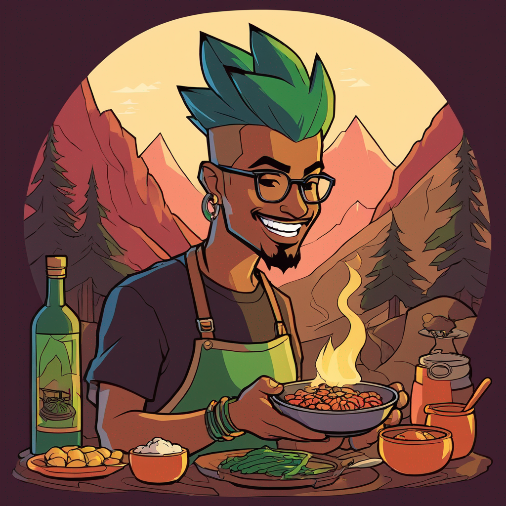 a lotus lad cooking dinner in a remote mountain cabin